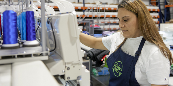 Our top-of-the-line machines are built for precision. Using the most updated technology makes our needlework efficient and streamlined — no unnecessary stitches that drive up product costs.